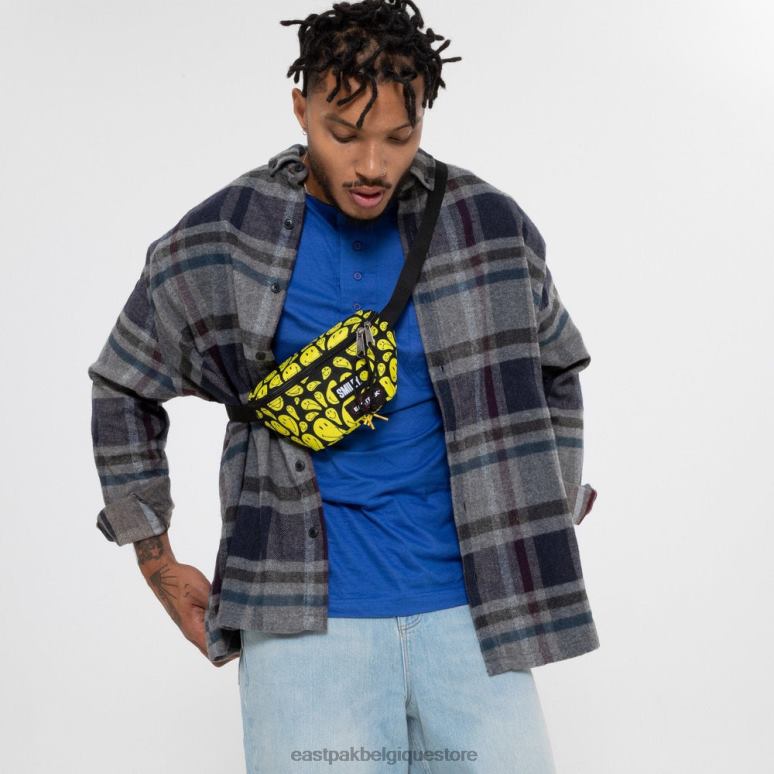 notre deuxième collaboration avec smiley se concentre sur les points positifs avec une collection ludique inspirée par l'icône universellement reconnue. notre sac banane eastpak classique présente un imprimé graphique smiley avec des logos co-marqués.